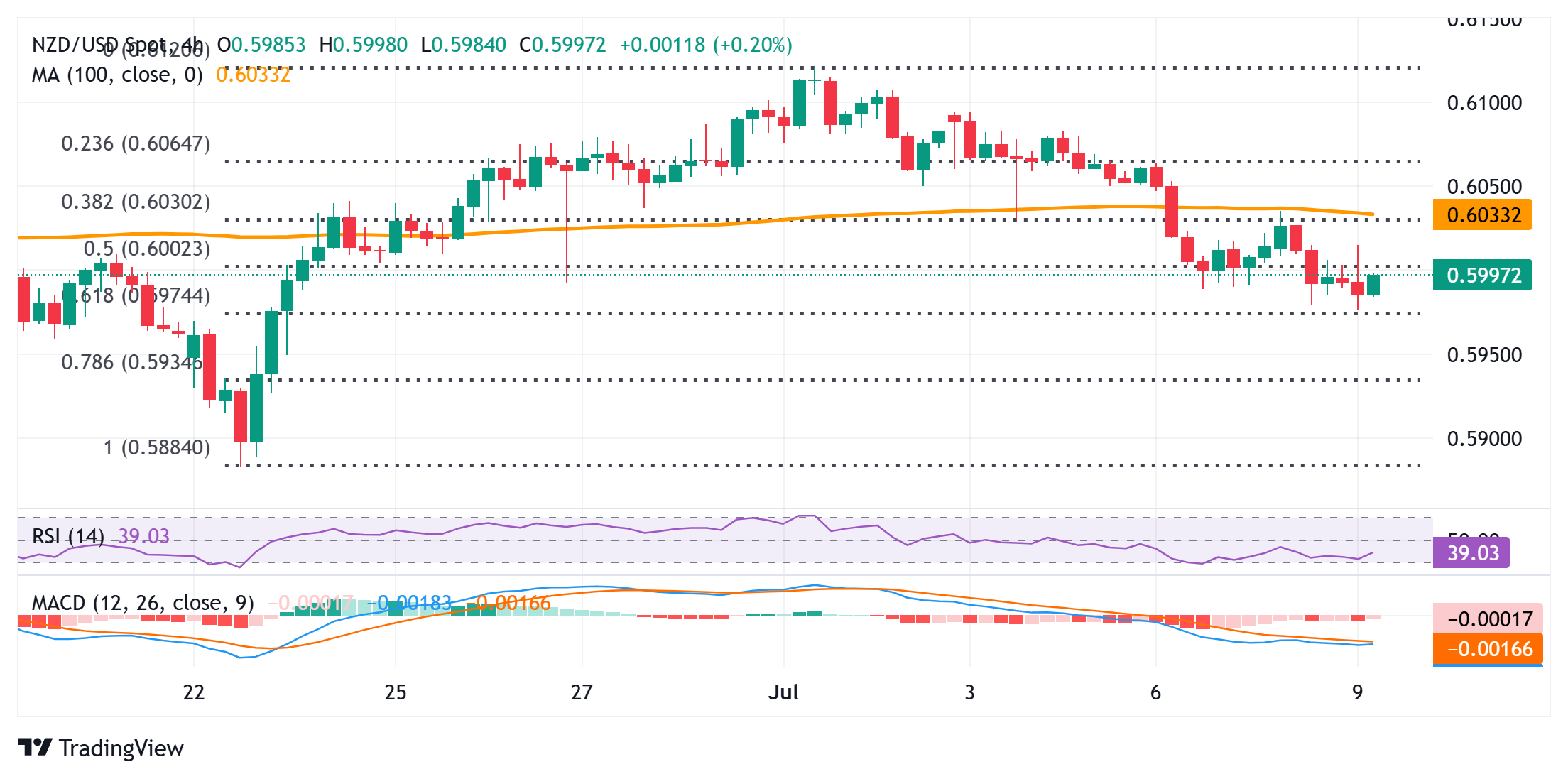 纽元/美元价格预测:在新西兰储备银行之后徘徊在两周低点附近,似乎在0.6000以下脆弱