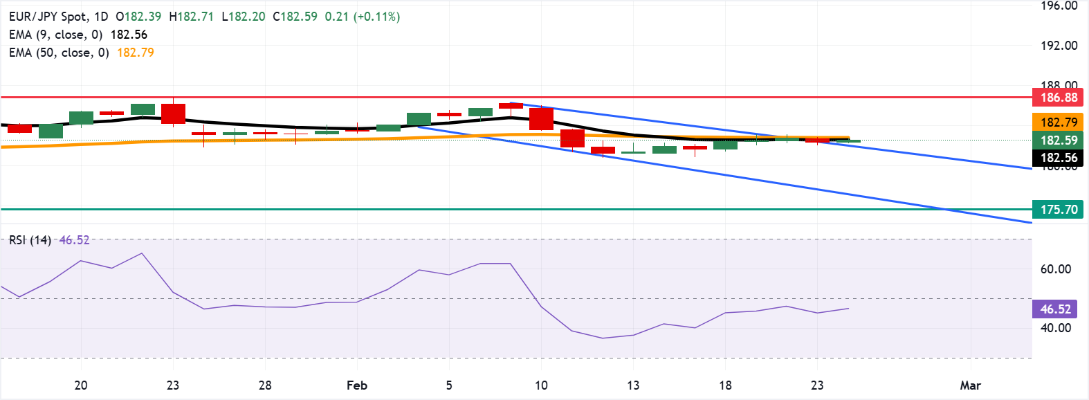 欧元/日元价格预测:维持在182.50附近的九日指数移动平均线之上