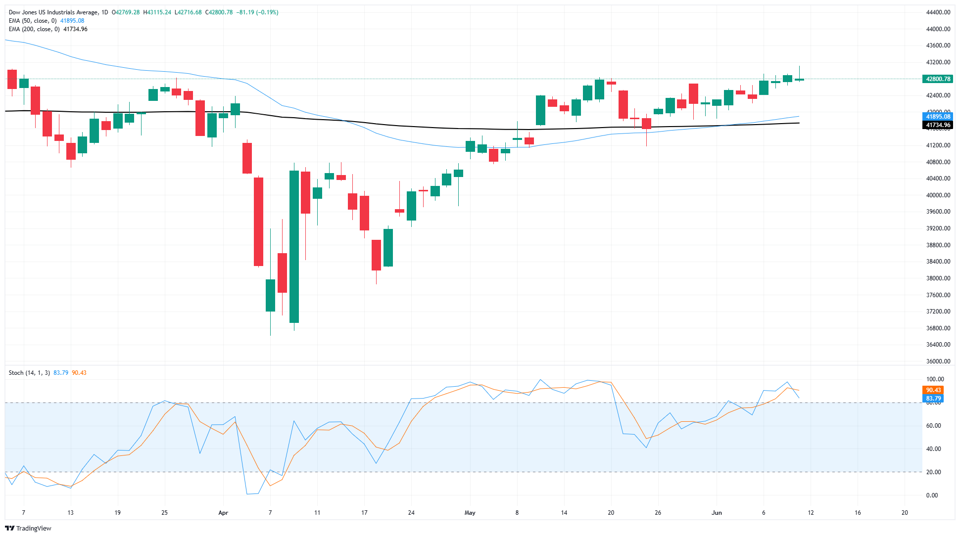 道琼斯工业平均指数在美国CPI数据超预期后测试更高水平