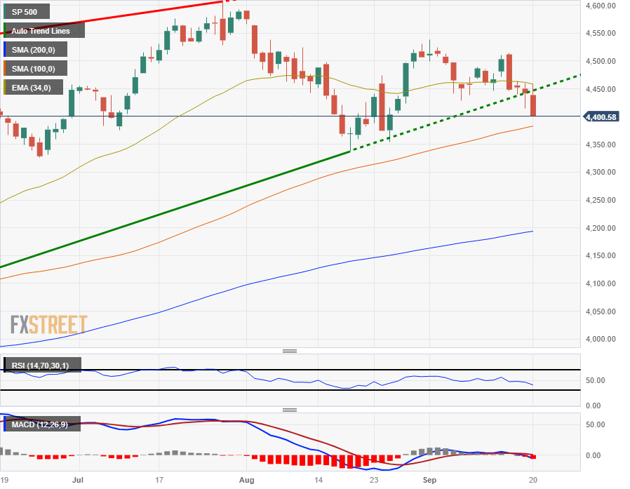 美联储官员还表示,今年可能还会加息一次,但美联储主席鲍威尔指出,这很可能是加息周期的顶峰。 标题:美联储释放鹰派打压股市,标准普尔 500 指数下跌40点