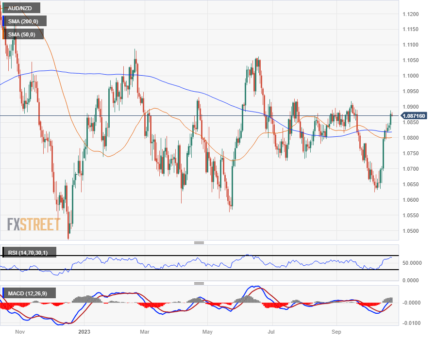 25 Oct 2023 澳元/纽元价格分析:澳洲通胀即将公布,澳元/纽元处在1.09紧下方 130 澳元/纽元不断走高,周二澳元/纽元上涨了 0.34%,自两周前触及 1.0624 最新低位以来,澳元/纽元上涨了 2.4%。 日内交易显示,澳元/纽元小时蜡烛图获得了一些支撑,持续受到近期50小时简单移动均线(SMA)技术支撑,目前位于1.0852附近。 2023 年大部分时间里,澳元/纽元维持 标题:澳元/纽元价格分析:澳洲通胀即将公布,澳元/纽元处在1.09紧下方 地址:www.shudhfilmynews.com/article/16471.html