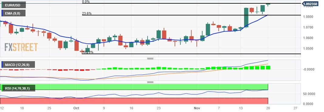 20 Nov 2023 欧元/美元价格分析:上升至1.0920附近,因预计美联储将结束加息 100 欧元/美元延续连涨,于周一亚市交投于三个月高点1.0920附近。该货币对似乎逼近1.0950附近的短期阻力位,因为美联储可能结束加息周期令美元面临压力。 若升破后者,可能支持多头指向下一个障碍1.1000的心理水平,然后为8月高点1.1064。 技术指标支持欧元/美元持续上涨。14天RSI位于5 标题:欧元/美元价格分析:上升至1.0920附近,因预计美联储将结束加息 地址:www.shudhfilmynews.com/article/17391.html