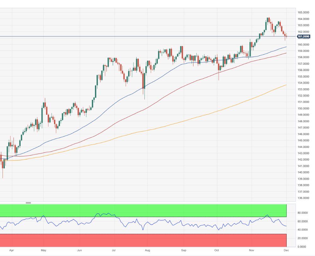 下行趋势的延续有可能促使该交叉盘跌破 160.00 整数关口,并重新触及位于 159.58 的 55 日均线。