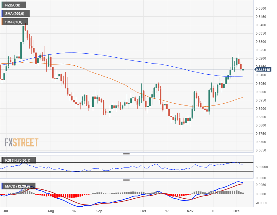 周三亚市,纽元/美元挣扎于0.6130水平附近,纽元/美元连续两日下跌。