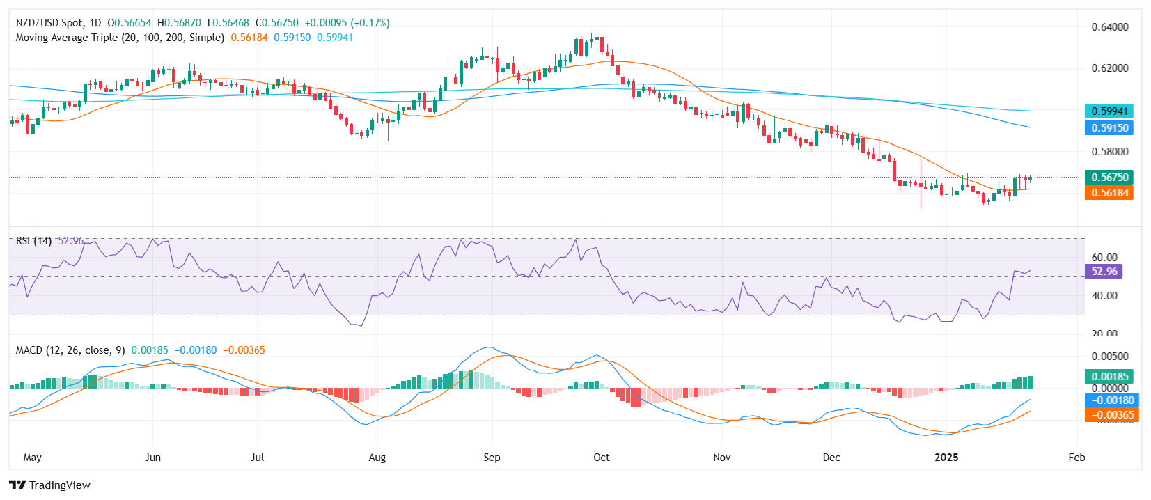 纽元/美元货币对收于0.5670,价格走势表明在近期高点附近有一段盘整期,但看涨动能依然完好 技术指标强化了建设性前景 标题:纽元/美元价格分析:货币对在近期高点附近企稳,仍看涨