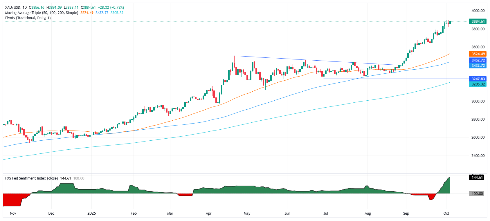 04 Oct 2025 黄金因政府关门引发避险需求而上涨,瞄准历史高点 0 金价在周五北美时段上涨,日内上涨0.70%,因美国政府停摆延续至第三天,预计将连续第七周以积极的姿态结束本周。撰写时,黄金/美元交易于3,882美元,之前触及日低3,838美元 标题:黄金因政府关门引发避险需求而上涨,瞄准历史高点 地址:www.shudhfilmynews.com/article/44674.html