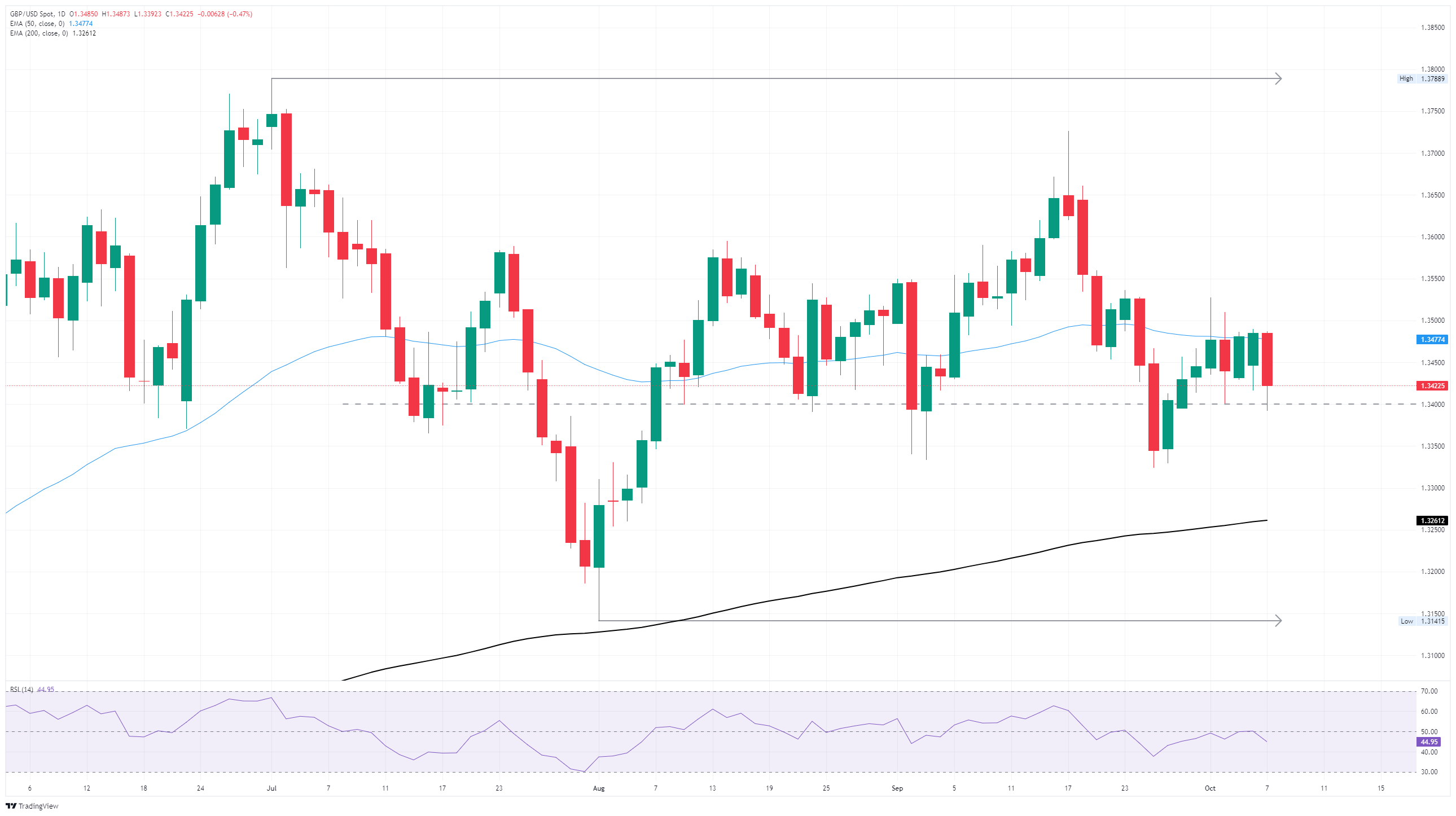 08 Oct 2025 英镑/美元在1.34价格底部挣扎,交易者静候美联储会议纪要 0 英镑/美元周二再次走低,回落至1.3450下方,延续了近期的盘整区间,因为该货币对在50日指数移动平均线(EMA)附近缓慢波动。 标题:英镑/美元在1.34价格底部挣扎,交易者静候美联储会议纪要 地址:www.shudhfilmynews.com/article/44818.html