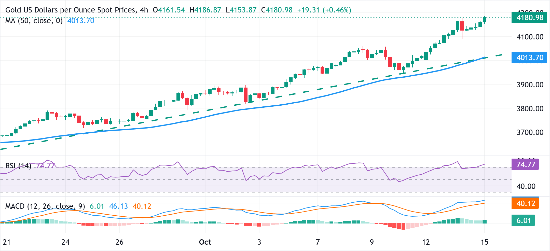 15 Oct 2025 金价接近4200美元;似乎有望延续创纪录的上涨势头 0 黄金(黄金/美元)在周三的亚洲时段继续攀升至新的历史高点,并似乎有望征服4200美元的整数关口,背后有支持的基本面因素。 标题:金价接近4200美元;似乎有望延续创纪录的上涨势头 地址:www.shudhfilmynews.com/article/45071.html