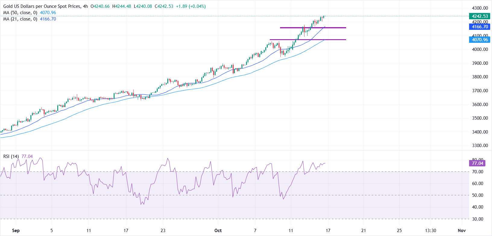 17 Oct 2025 金价接近4300美元,贸易战担忧和美联储降息押注推动需求 1 黄金(XAU/USD)在周四延续其不懈的上涨势头,创下新的历史高点,因为在日益加剧的地缘政治和经济不确定性中,避险需求依然强劲。截至发稿时,黄金/美元交投于 4290 美元附近,本月迄今上涨近 11%,年初至今上涨超过 60% 标题:金价接近4300美元,贸易战担忧和美联储降息押注推动需求 地址:www.shudhfilmynews.com/article/45203.html