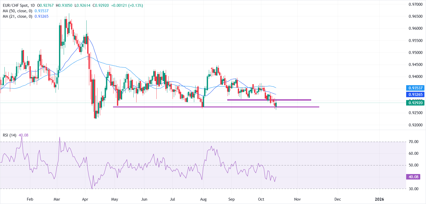 17 Oct 2025 EUR/CHF反弹,法国政治缓解提振欧元,瑞士增长前景黯淡 4 周四,欧元(EUR)对瑞士法郎(CHF)走强,欧元/瑞郎在当天早些时候短暂跌至4月17日以来的最低水平后,结束了四天的下跌趋势。截至撰写时,该货币对交易于0.9290附近,保持坚挺,买家在突破0.9300心理关口方面面临挑战。 标题:EUR/CHF反弹,法国政治缓解提振欧元,瑞士增长前景黯淡 地址:www.shudhfilmynews.com/article/45214.html