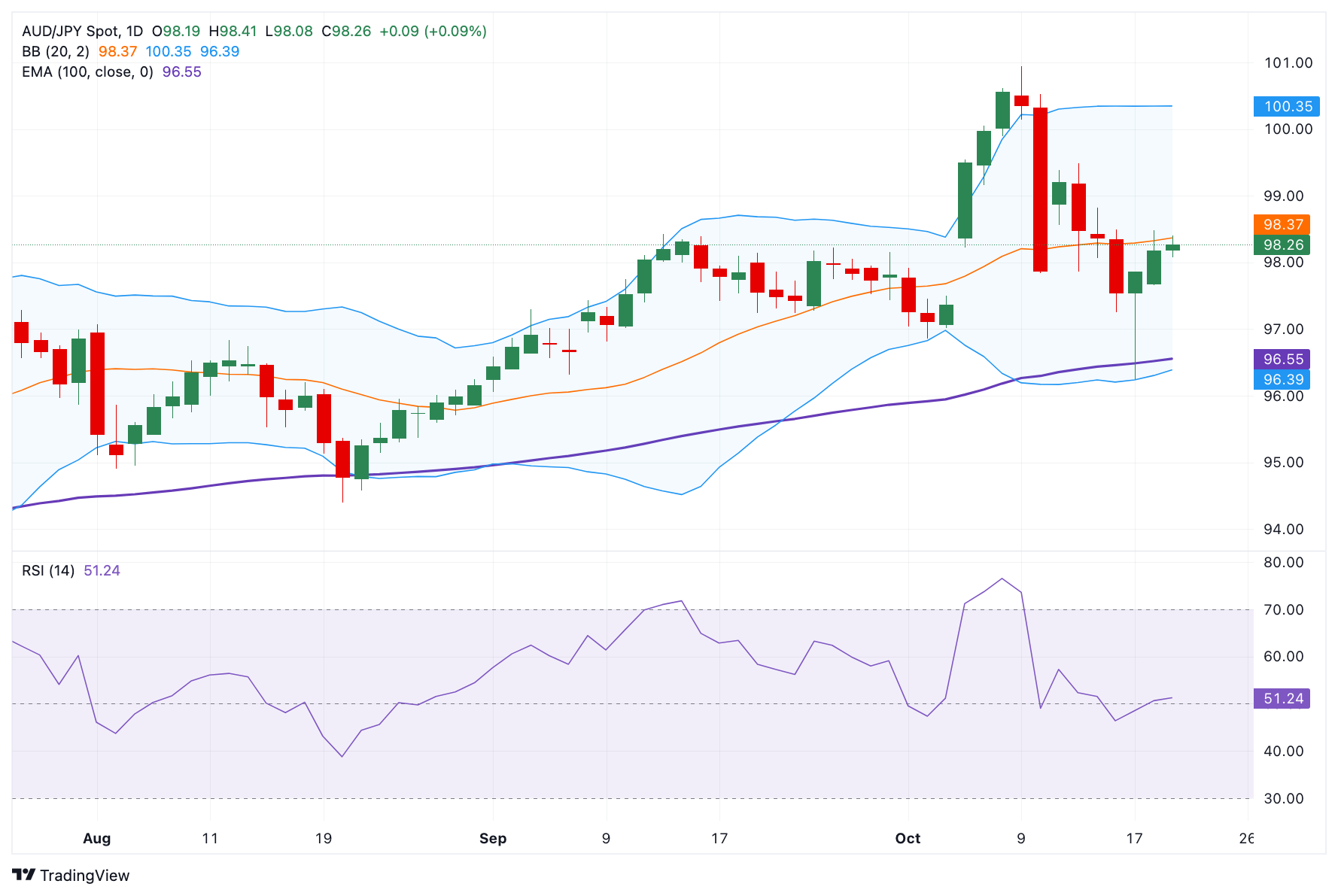 21 Oct 2025 澳元/日元价格预测:维持在98.00上方,高市赢得众议院多数席位 0 周二欧洲早盘时段,澳元/日元在98.25附近交投于积极区域。由于鸽派的高市早见(Sanae Takaichi)有望成为首位女性首相,日元(JPY)兑澳元(AUD)小幅走低。 标题:澳元/日元价格预测:维持在98.00上方,高市赢得众议院多数席位 地址:www.shudhfilmynews.com/article/45308.html