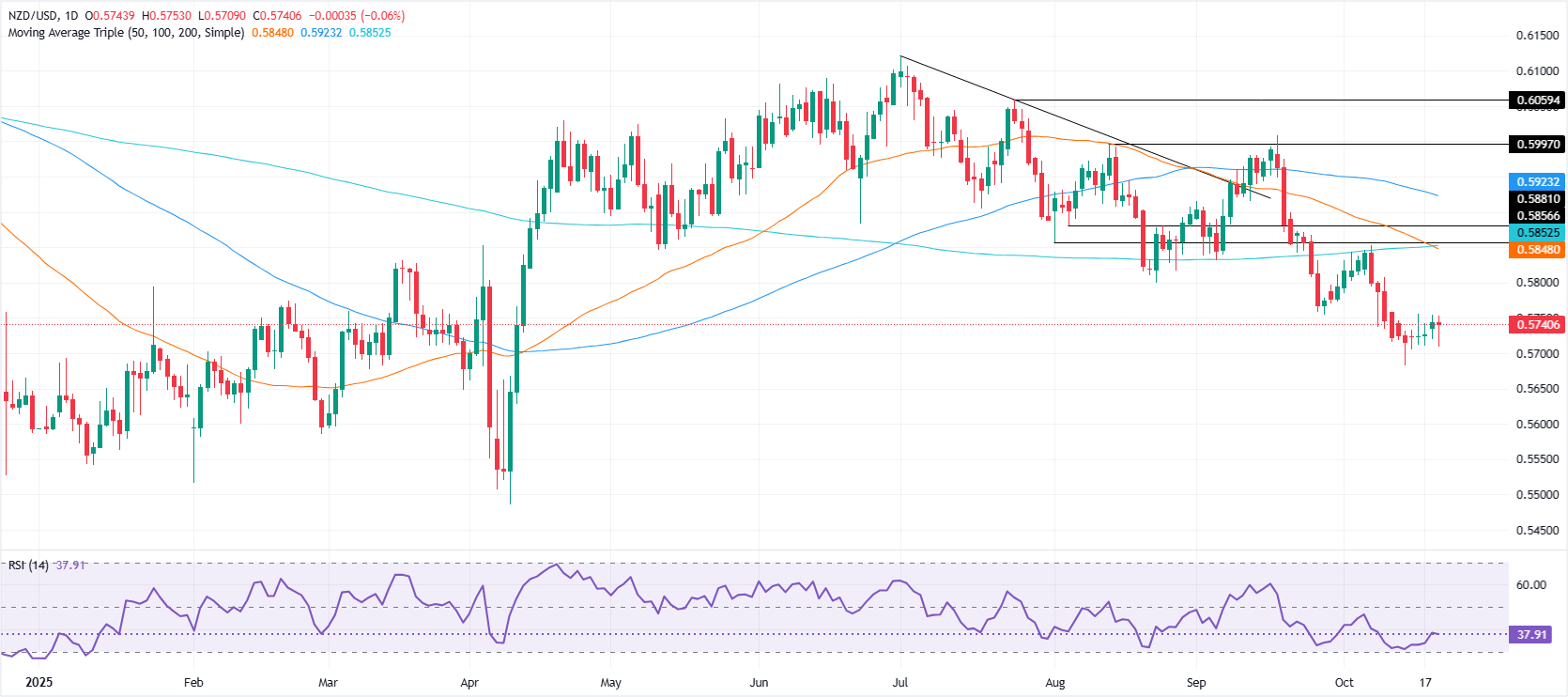新西兰元在周三亚洲时段开始时恢复了一些涨幅,但仍在0.5740附近徘徊,已经连续第三天低于20日简单移动均线(SMA) 标题:纽元/美元价格预测:在0.5740附近稳定,交易者等待催化剂