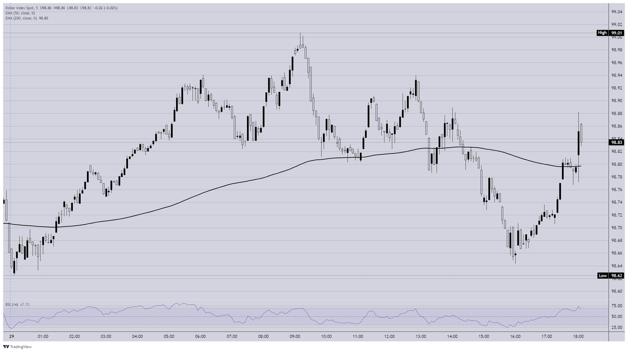 在美联储(Fed)周三实施广泛预期的25个基点降息后,美元指数(DXY)出现波动。 标题:美联储按预期调整利率后,美元指数剧烈波动