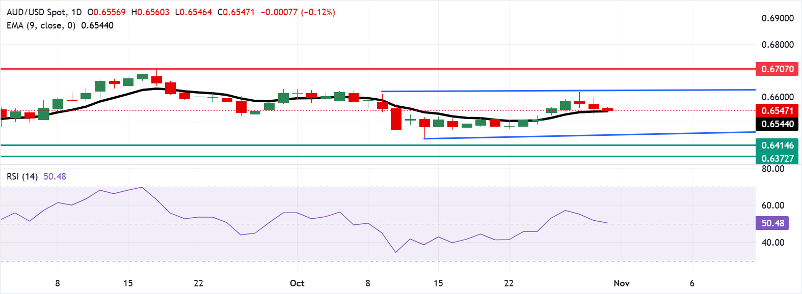 周五亚洲时段,澳元/美元连续第三个交易日保持低迷,交投于0.6550附近。在中国国家统计局采购经理人指数(PMI)数据公布后,该货币对几乎没有波动。 标题:澳元在中国国家统计局(NBS)采购经理人指数(PMI)数据发布后走弱