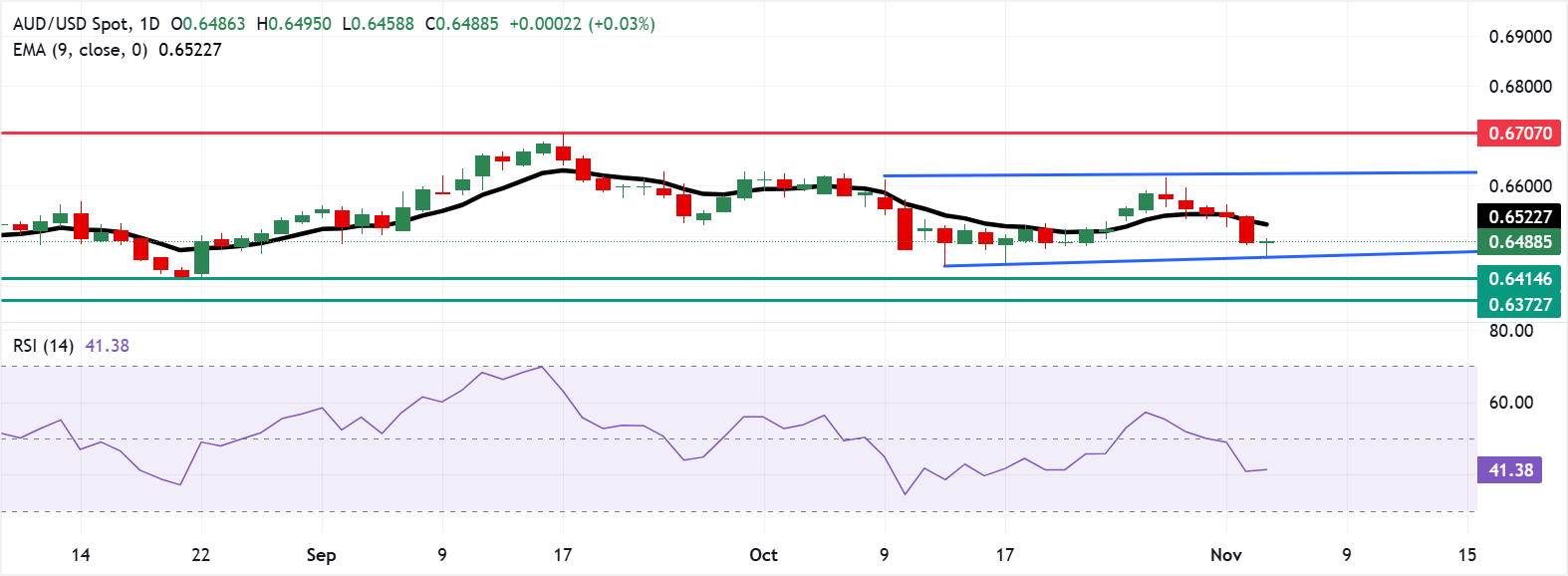 澳元(AUD)在周三兑美元(USD)小幅走高,扭转了日内的跌幅。在中国财政部宣布将于11月10日起取消部分美国农产品关税后,澳元/美元对进一步上涨产生了支撑。 标题:澳元在中国宣布取消对美国农产品的关税后上涨