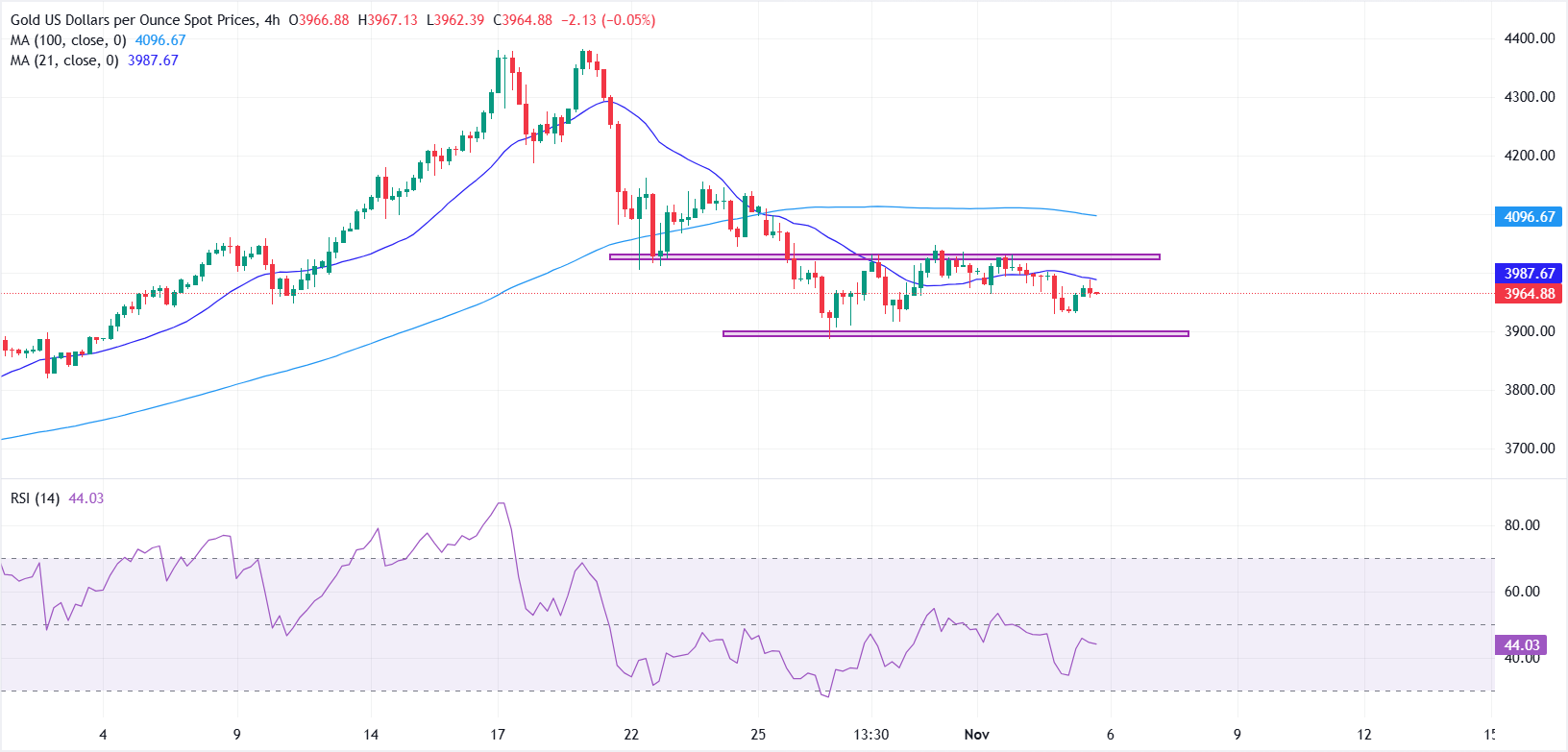 黄金(黄金/美元)在周三保持在熟悉的区间内,因全球市场的轻微避险情绪支撑了对这一避险金属的需求。在撰写本文时,黄金/美元交投于3975美元附近,较周二的低点3928美元略有回升。 标题:金价维持区间震荡,强势美元限制上涨空间