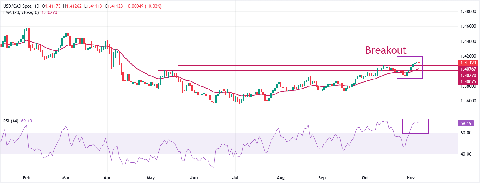 根据加拿大统计局的数据,加拿大的失业率在10月份降至6.9%(从7.1%),低于分析师的预期。此外,净就业变化增加了66.6K人(从60.4K),而参与率提高至65.3%(从65.2%)。最后,作为通胀的代理指标,平均时薪在过去12个月中上涨了4.0%。 标题:加拿大10月份失业率为6.9%