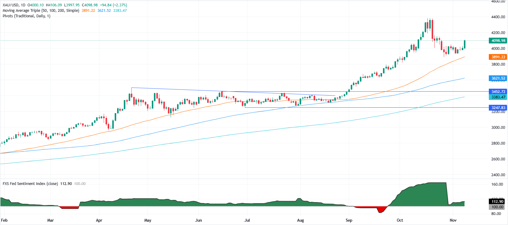 周一,金价上涨超过2%,因投资者增加了对美联储(Fed)在12月会议上降息的押注。与此同时,美国政府可能重新开放的消息推动美元走高,但黄金买家仍然不愿放弃早前的涨幅 标题:尽管美联储降息预期减弱和美元回升,黄金仍然上涨