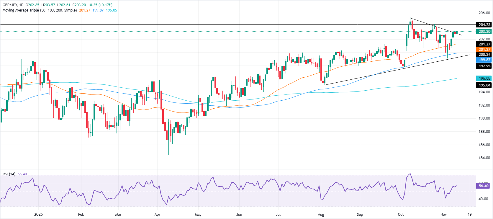 英镑/日元周三维持涨幅,涨幅超过0.31%,交易价格约为203.16,受到整体日元(JPY)走弱的提振。 标题:英镑/日元价格预测:在日元走弱的情况下,突破203.00,延续上扬