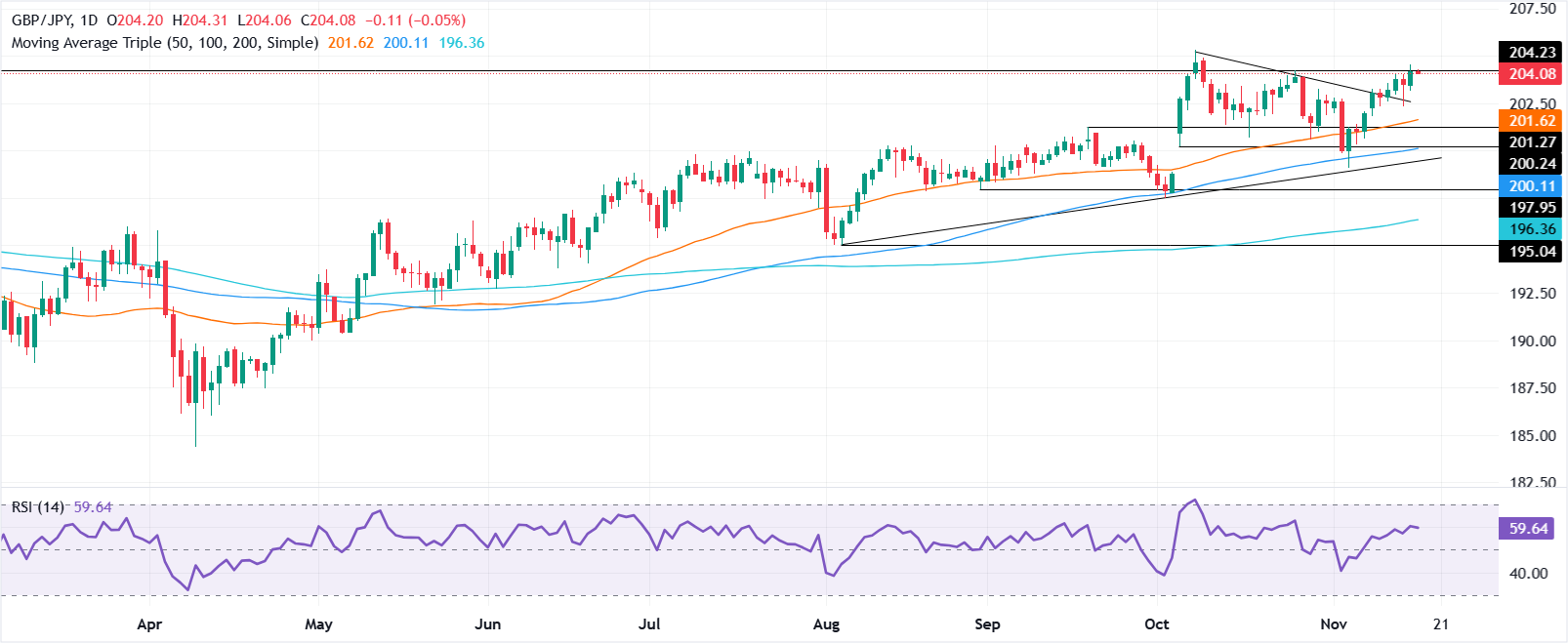 英镑/日元在周一上涨至五周高点204.53,涨幅为0.33%,因日元因中日之间日益紧张的局势而走弱。 标题:英镑/日元价格预测:触及204.50附近的五周高点