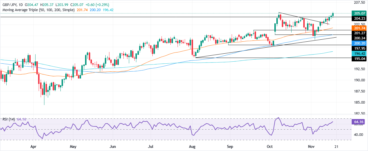 英镑/日元反弹至205.00以上,创下六周和年度新高,涨幅超过0.40%或80个点,因为日本央行行长植田和男与日本财政部长会晤。该交叉盘在周四亚洲时段开始时几乎没有变化,报205.07。 标题:英镑/日元价格预测:多头掌控,刷新年内高点至205.00以上