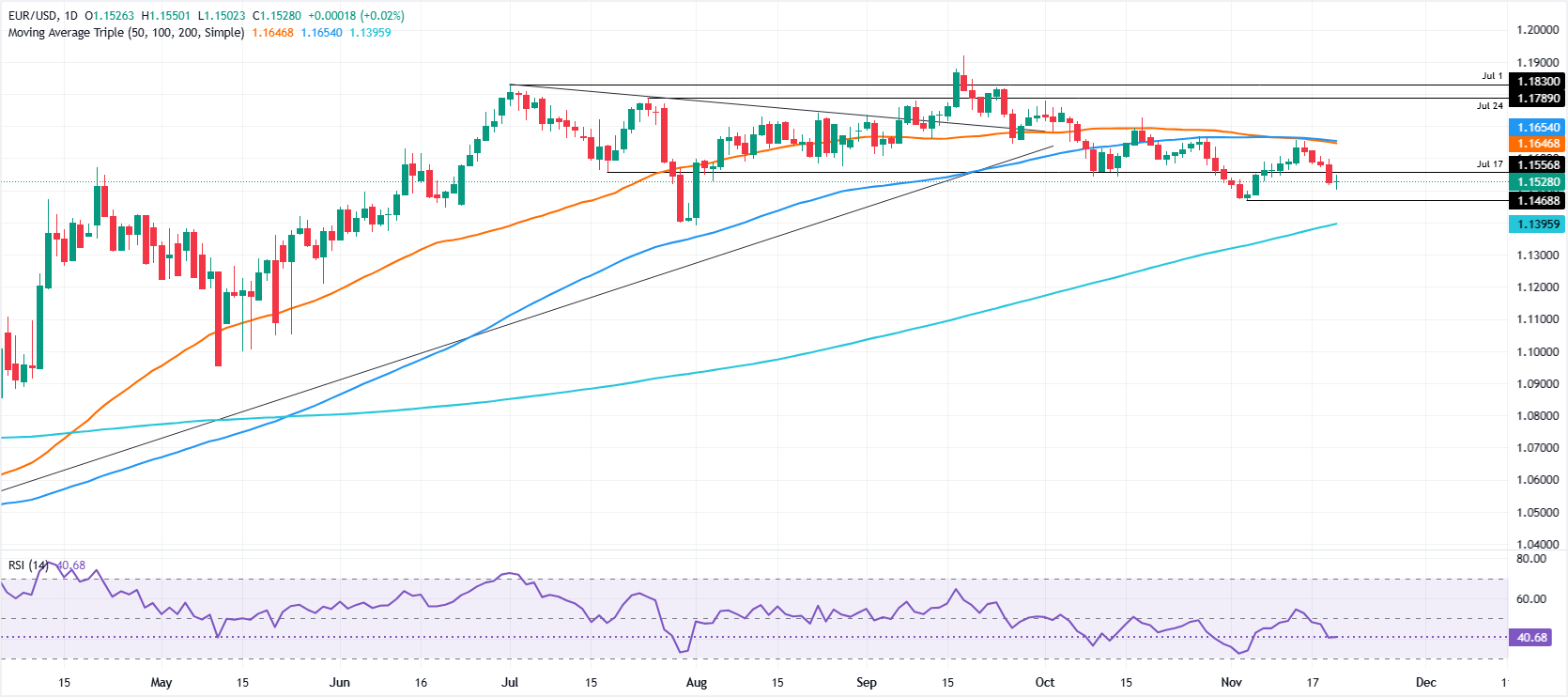 欧元/美元在周四保持坚挺,此前美国(US)发布了出色的就业报告,暗示劳动力市场依然稳健,尽管在2025年下半年有所放缓。撰写时,该货币对交易于1.1533。 标题:欧元/美元在1.1540附近持平,因为非农就业数据的意外表现增强了鸽派美联储押注