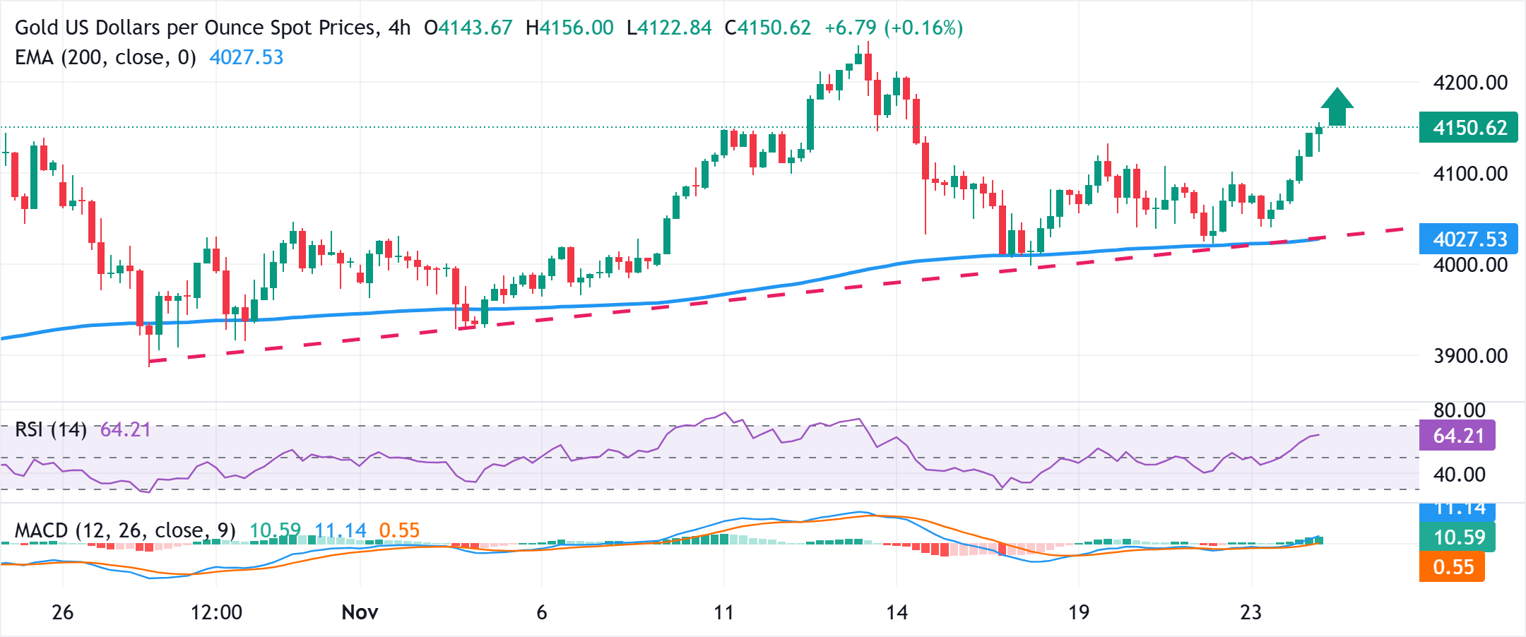 黄金(黄金/美元)连续第二天获得一些积极的跟进动力,并在周二亚洲时段上涨至一个半星期的高点 标题:黄金在4150美元附近保持看涨偏向,创下超过一周的高点,因美联储降息押注