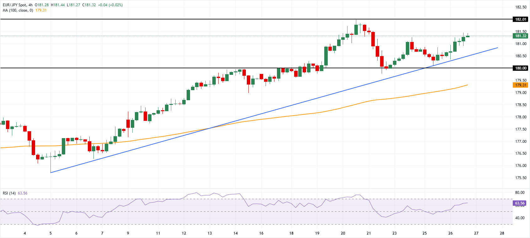 周三,欧元/日元在181.30附近交易,较发稿时上涨0.40%。该交叉盘受益于改善的风险情绪,投资者密切关注政治声明,暗示俄罗斯与乌克兰之间可能在和平协议方面取得进展。 标题:欧元/日元因地缘政治乐观和欧洲央行的谨慎乐观而上涨