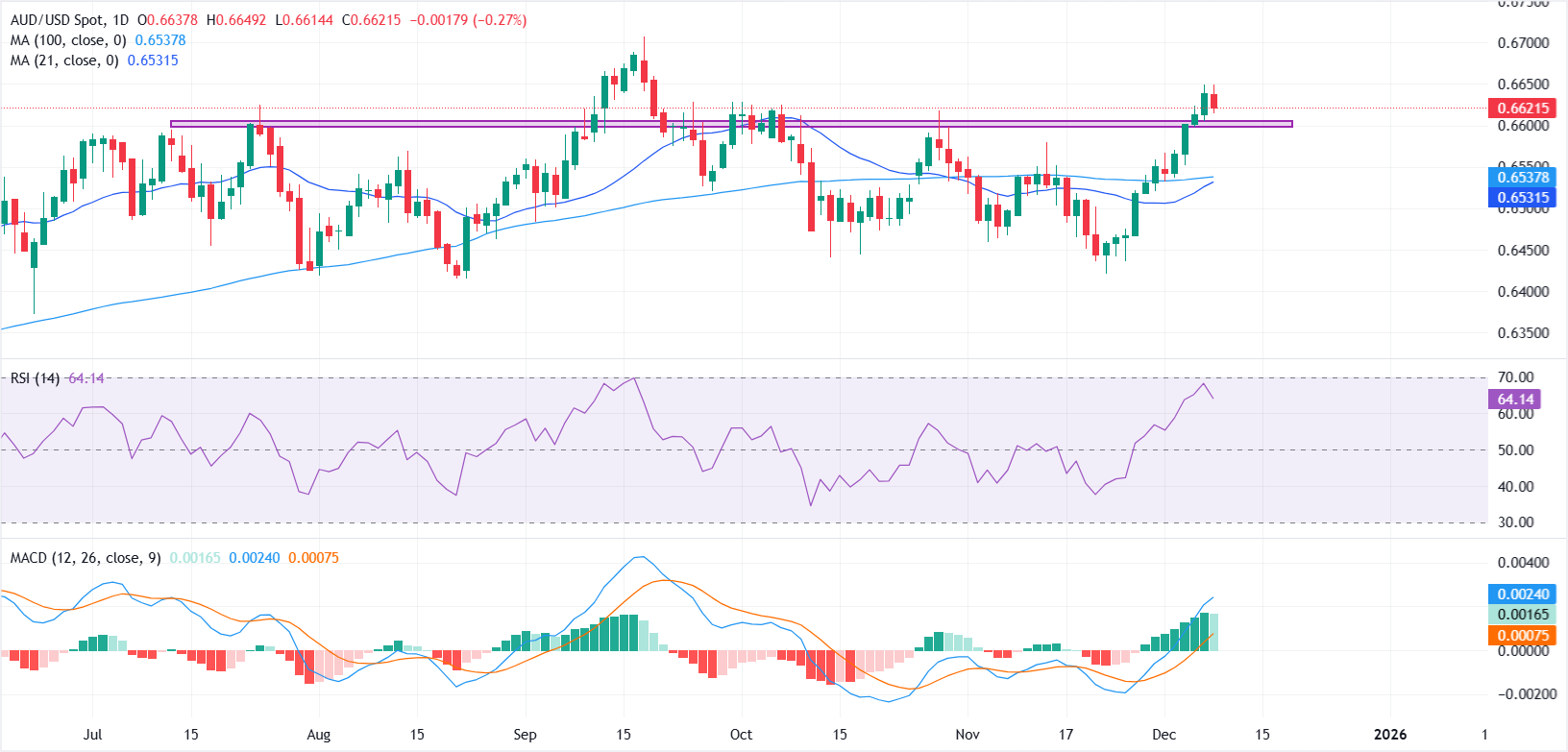 周一,澳元(AUD)对美元(USD)走势疲软,澳元/美元结束了四日连涨,因美元企稳。 标题:澳元/美元价格预测:澳元在澳洲联储决策前停滞;0.6600上方看涨形态依然存在