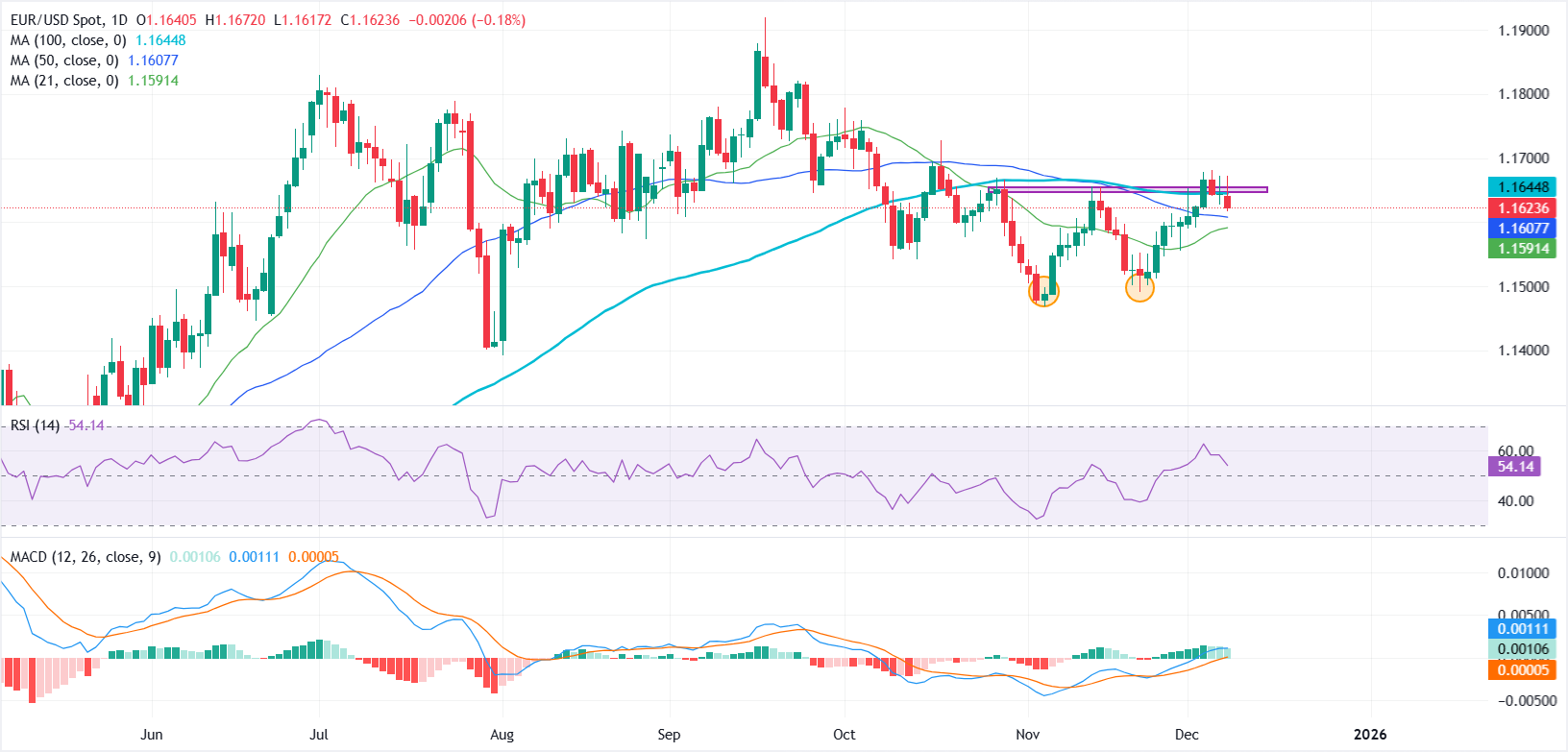 周一,欧元兑美元小幅走低,欧元/美元扭转了早前的涨幅,因美元从近期低点反弹,给共同货币施加了压力 标题:欧元/美元价格预测:欧元/美元在美元在美联储决策前走强的情况下停滞在1.1650下方