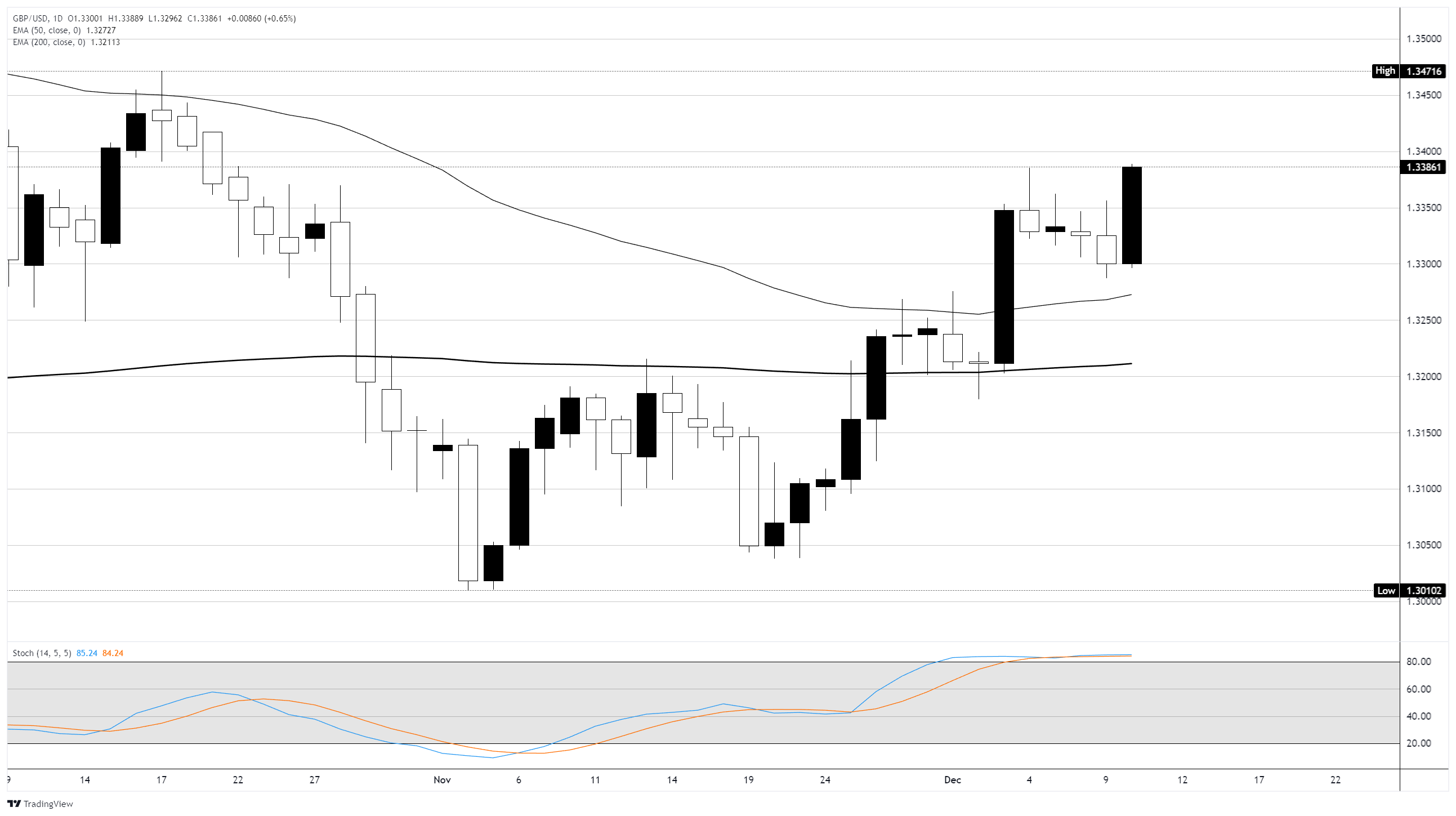 英镑/美元在周三突破七周高点,重新回到1.3400附近,此前美联储(Fed)进行了广泛预期的第三次连续降息。美联储主席杰罗姆·鲍威尔表现得特别谨慎,暗示美联储可能准备进入另一个延长的“观望”期。全球市场在很大程度上对美联储主席的警告不以为然,利率市场已经在定价未来两年内比美联储自身预期更快的降息步伐。 标题:英镑/美元在美联储连续第三次降息后反弹