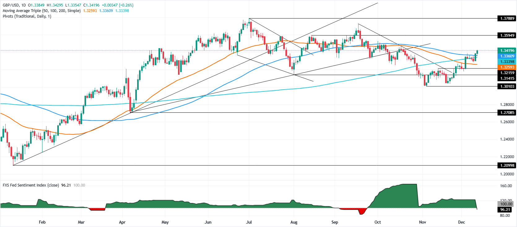 英镑(GBP)在周四的北美时段反弹,涨幅超过 0.68%,此前美联储(Fed)宣布降息 25 个基点,并发布了不及预期的就业报告,这对美元(USD)造成了压力 标题:英镑/美元攀升至1.34以上,因美联储降息和疲软数据对美元施加压力