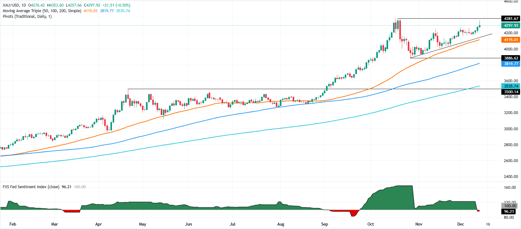 黄金(黄金/美元)周五小幅上涨,交易者似乎在周末前获利了结,但在达到七周高点4353美元后仍保持超过0.51%的涨幅。在撰写本文时,黄金/美元在4302美元交易,交易者正在消化美联储(Fed)官员的评论。 标题:由于美联储缺乏明确性和地缘政治摩擦持续,黄金仍然受到买盘支持
