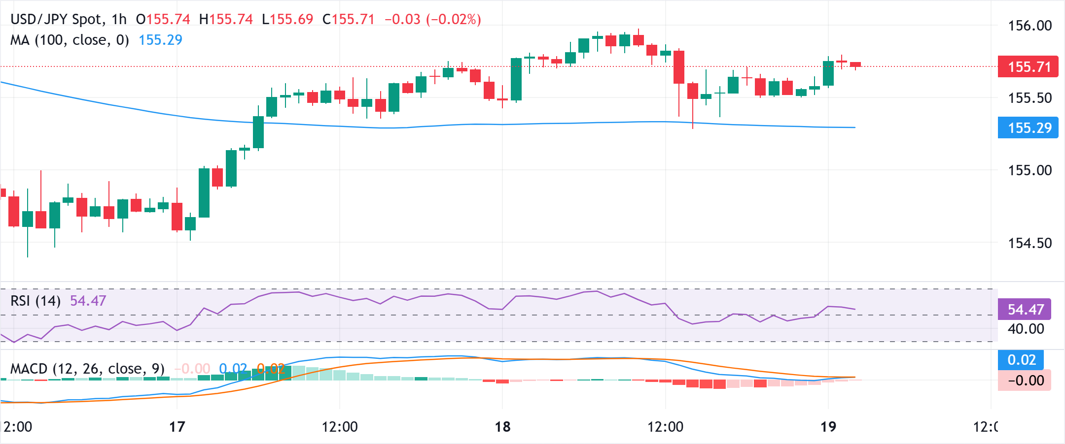 日本央行(BoJ)后,日元(JPY)持续承压,加上美元(USD)普遍走强,助力美元/日元汇率稳住在 156.00 以上,创下超过一周的新高 标题:日本央行行长植田和男的新闻发布会即将召开,日元仍然疲软