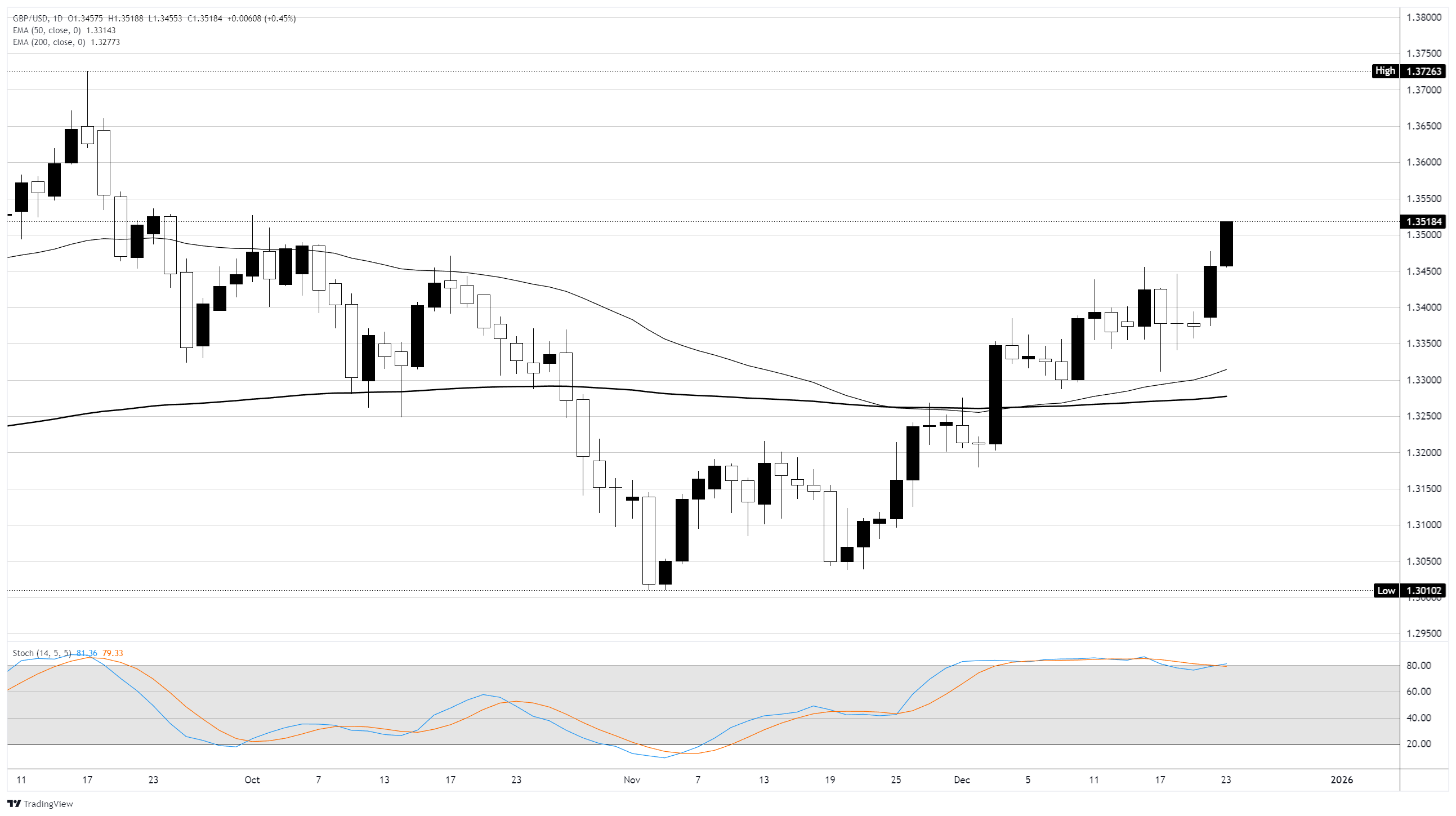 英镑/美元周二上涨约0.45%,受到全球美元(USD)流动普遍减少的支持 标题:英镑/美元延续看涨动能,美元走弱