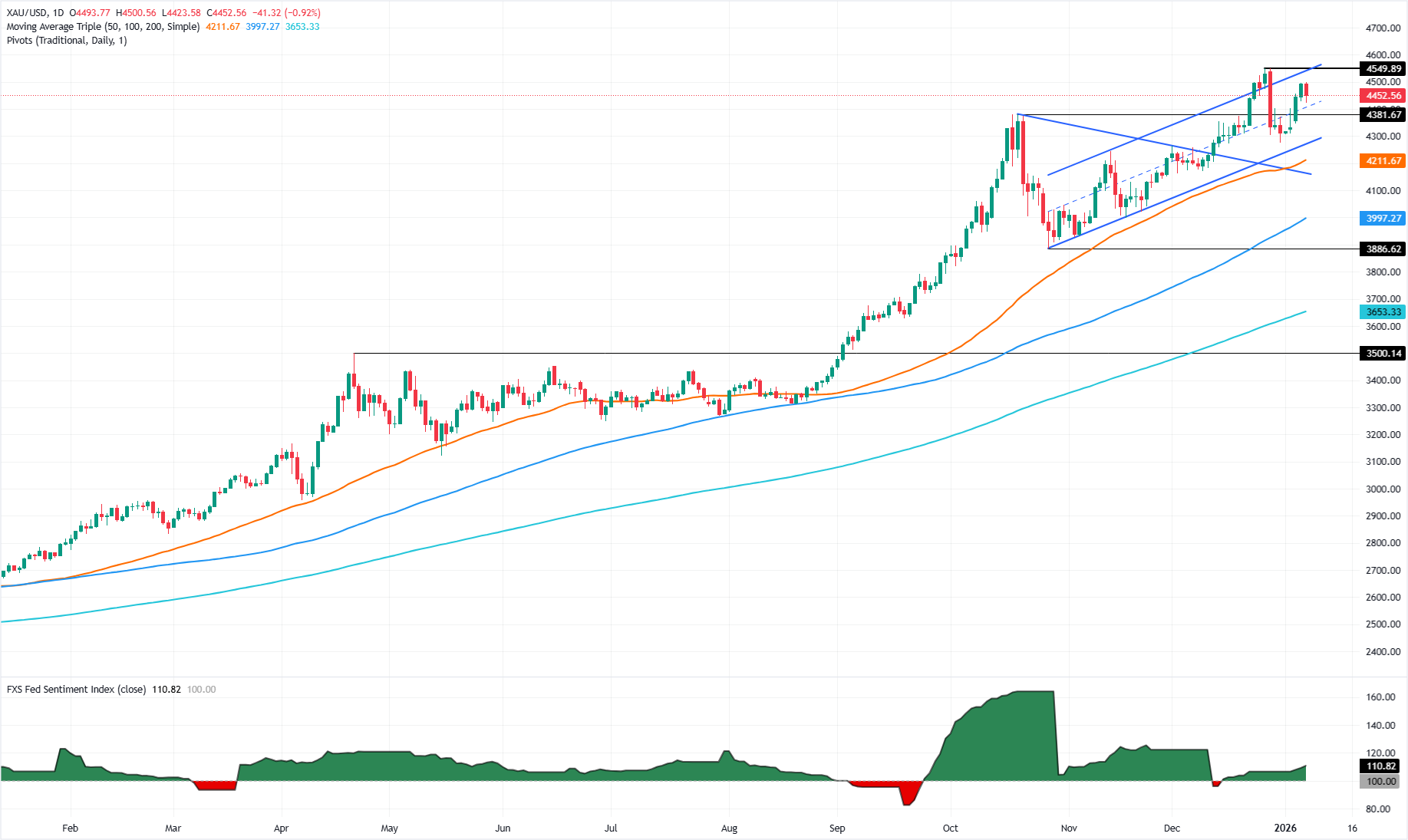 周三,金价下跌近1%,因美国经济数据表明商业活动改善,而劳动力市场显示出比预期更为稳健的迹象。撰写时,黄金/美元交易价格为4,465美元,曾达到4,500美元的高点 标题:黄金价格从4500美元回落,强劲的美国数据打击避险需求