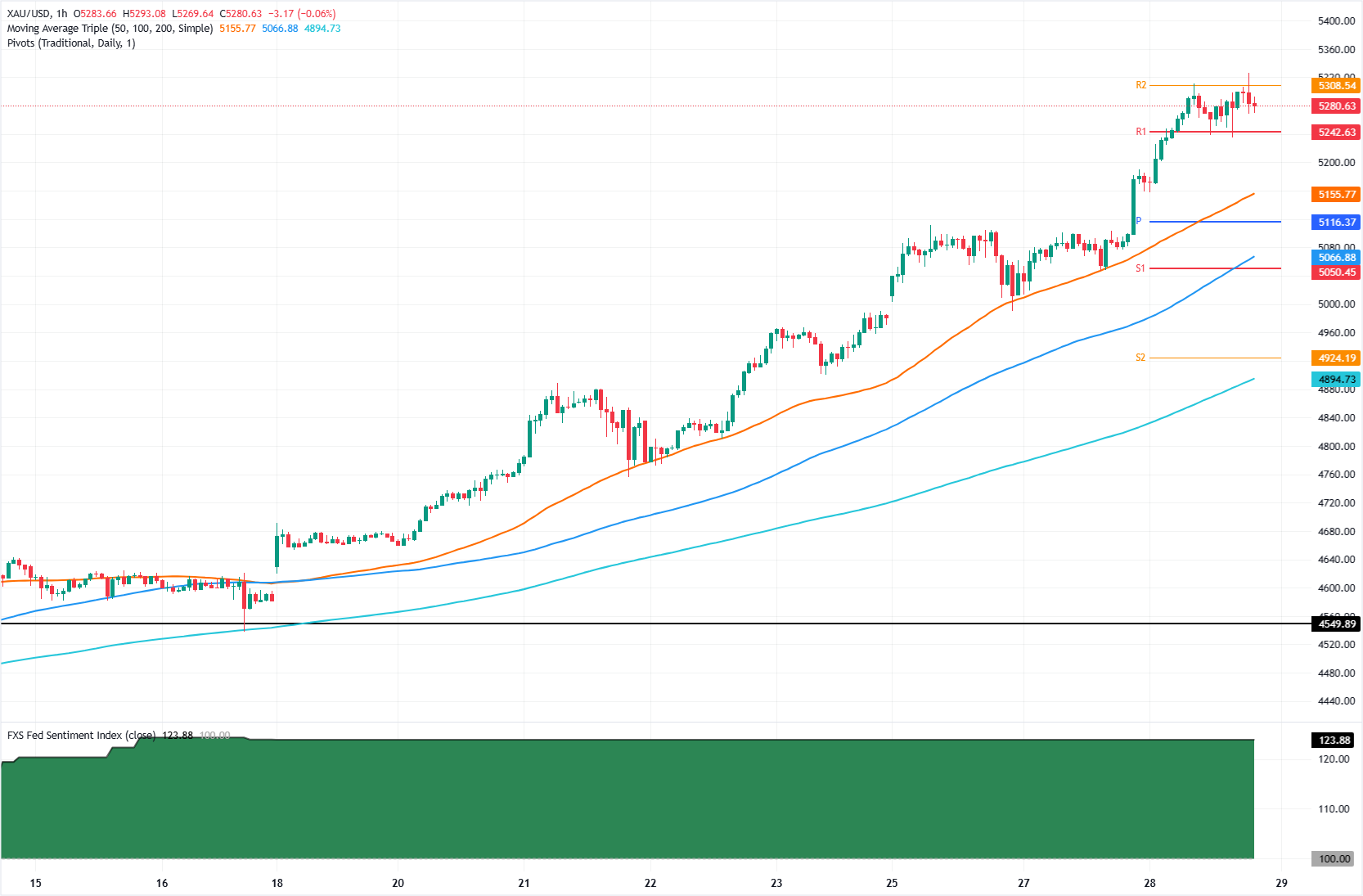 黄金(黄金/美元)价格在周三小幅回落,此前美联储决定维持利率不变,同时也表明劳动力市场已趋于稳定,这意味着美联储将维持较高的联邦基金利率更长时间。黄金/美元在美联储主席杰罗姆-鲍威尔的新闻发布会前在5250美元和5300美元之间波动。 标题:金价因美联储的鹰派维持而从5300美元回落