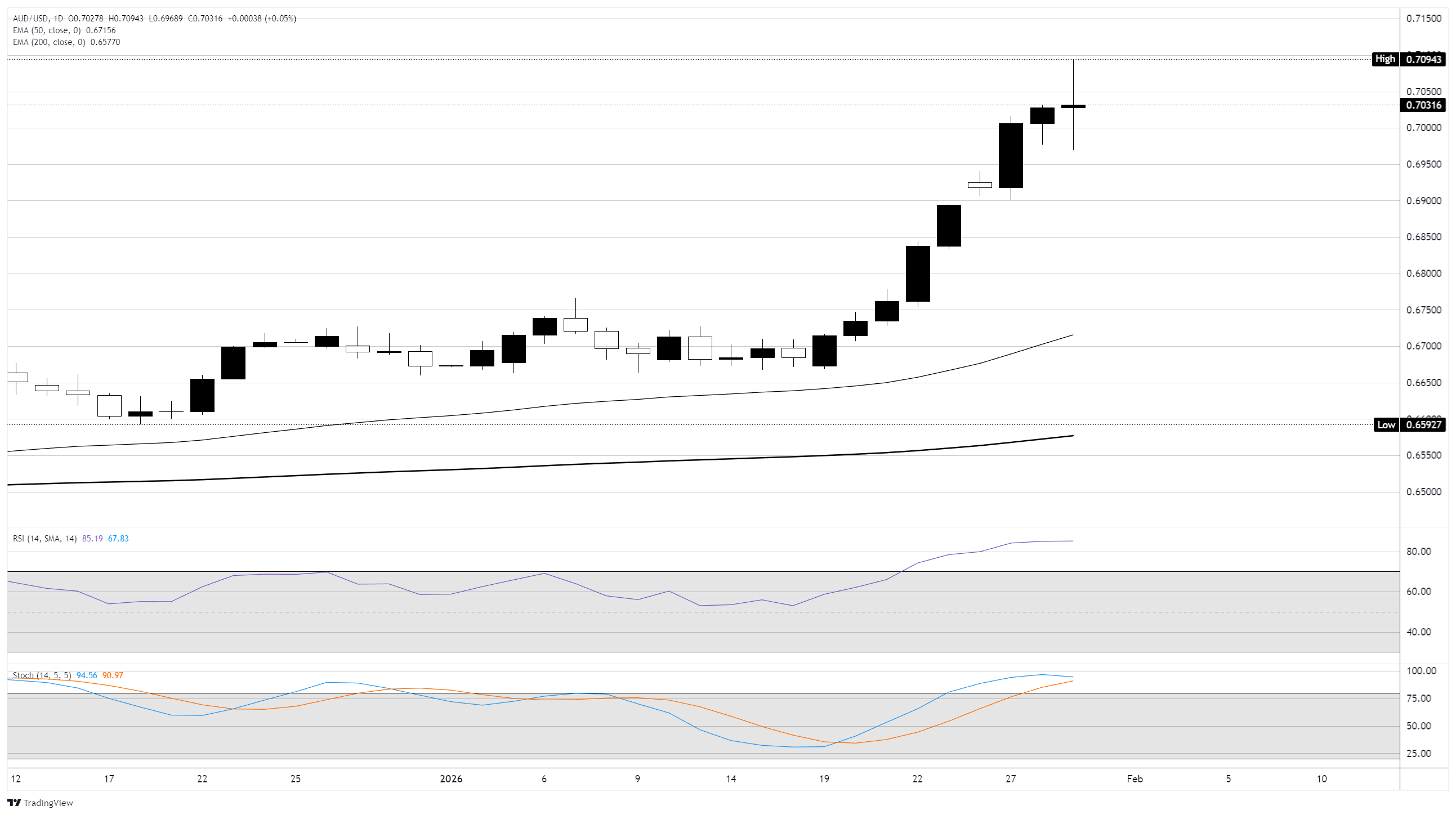 周四,澳元/美元在波动性加剧的情况下陷入了滑坡。澳元(AUD)兑美元(USD)触及三年来的高点,但在市场情绪普遍转差后,回落至当日低位。 标题:澳元/美元在创下三年新高后回落