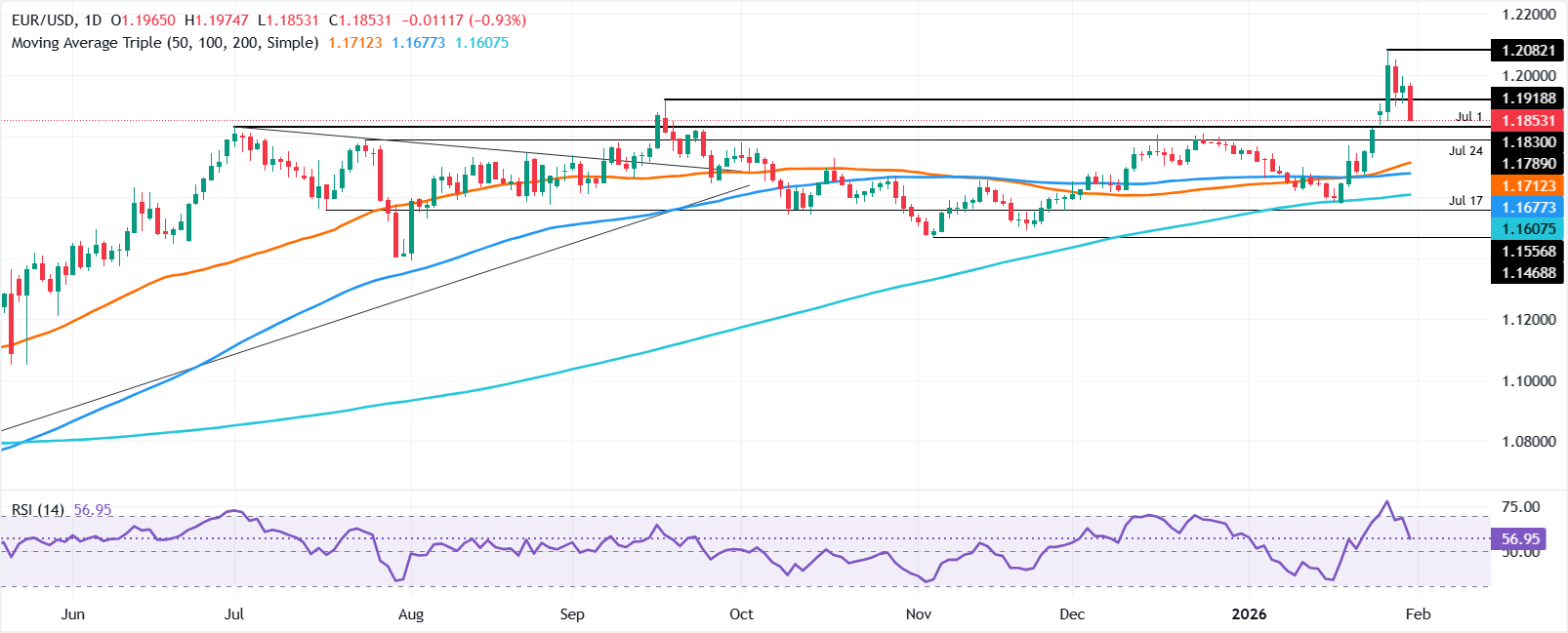 欧元/美元在北美时段下跌,跌幅为 0.75%,此时整体美元强势,受到特朗普温和鹰派提名美联储领导人以及一份支持美联储维持利率稳定的通胀报告的推动。 标题:欧元/美元下滑,沃什的美联储提名和强劲的美国PPI助推美元上扬