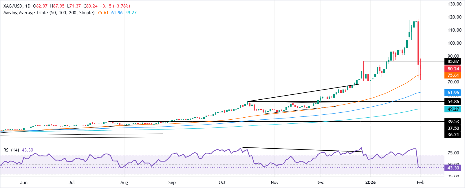 周一,银价录得超过5%的损失,因为贵金属的抛售连续第二天持续。美国的乐观经济数据改善了风险偏好,对灰色金属造成了不利影响。撰写时,白银(XAG/USD)交易价格为80.40美元,低于其开盘价 标题:白银暴跌超过5%,美国数据助长风险偏好,延续金属市场下跌