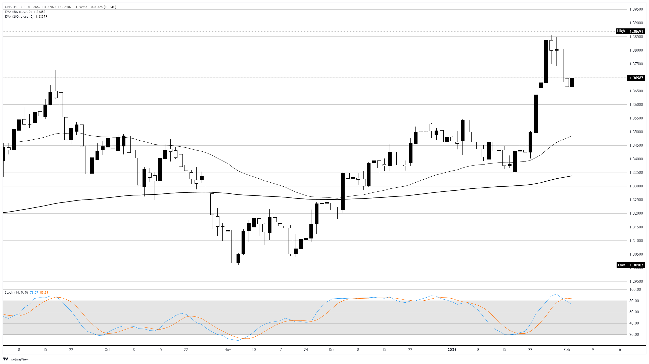 英镑(GBP)在周二对美元(USD)交投于窄幅区间,略微上涨至接近1.3700,因为市场在英国央行(BoE)2026年首次政策决定前采取了谨慎态度 标题:英镑/美元在英国央行利率决策前进行整固