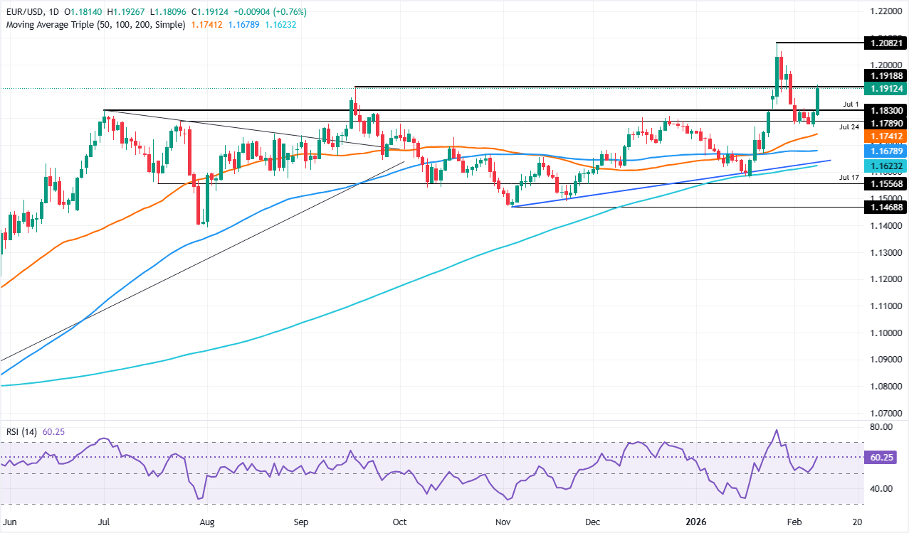 周一,欧元/美元上涨超过0.80%,因美元在中国当局建议金融机构减持美国国债的消息后保持平稳,因固定收益市场波动剧烈。撰写时,该货币对交易于1.1916,反弹自日低1.1808。 标题:欧元/美元飙升至1.1900以上,因中国国债消息打压美元
