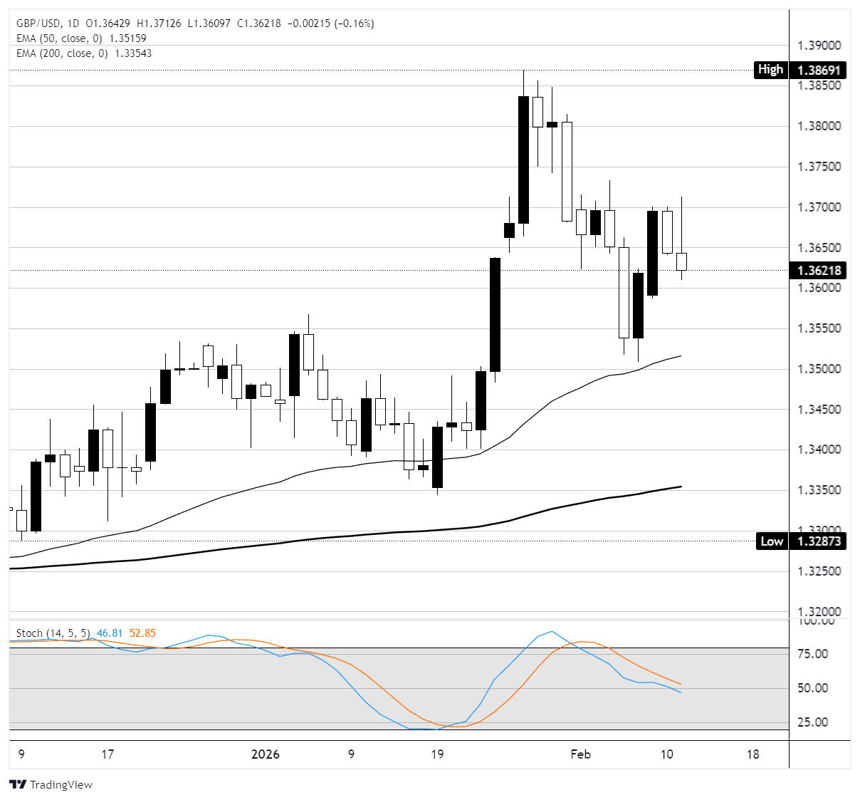 周三,英镑从四年高点回落,受到英国央行(BoE)鸽派立场和英国政治不确定性的共同影响,尽管美元因劳动市场修正疲软而走弱。英国央行在2月份的会议上维持利率不变,但以5-4的货币政策委员会(MPC)投票结果令市场感到意外,四名成员支持立即下调25个基点,结果比预期更为鸽派。 标题:英镑/美元在周四交易窗口前下滑