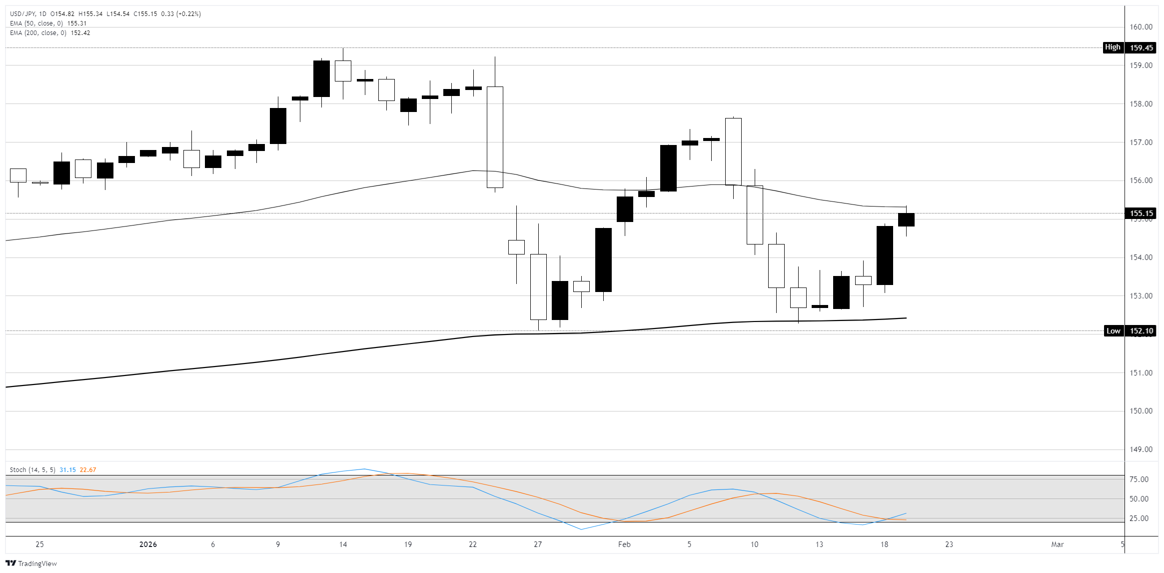 周三发布的美联储(FOMC)1月份会议纪要显示,委员会内部存在严重分歧,10比2的投票决定将利率维持在3.50%至3.75%,同时使用了描述通货紧缩可能“进展缓慢且不均匀”的措辞。 标题:美元/日元测试155.00,偏鹰派的FOMC与上升的日本央行加息押注相遇
