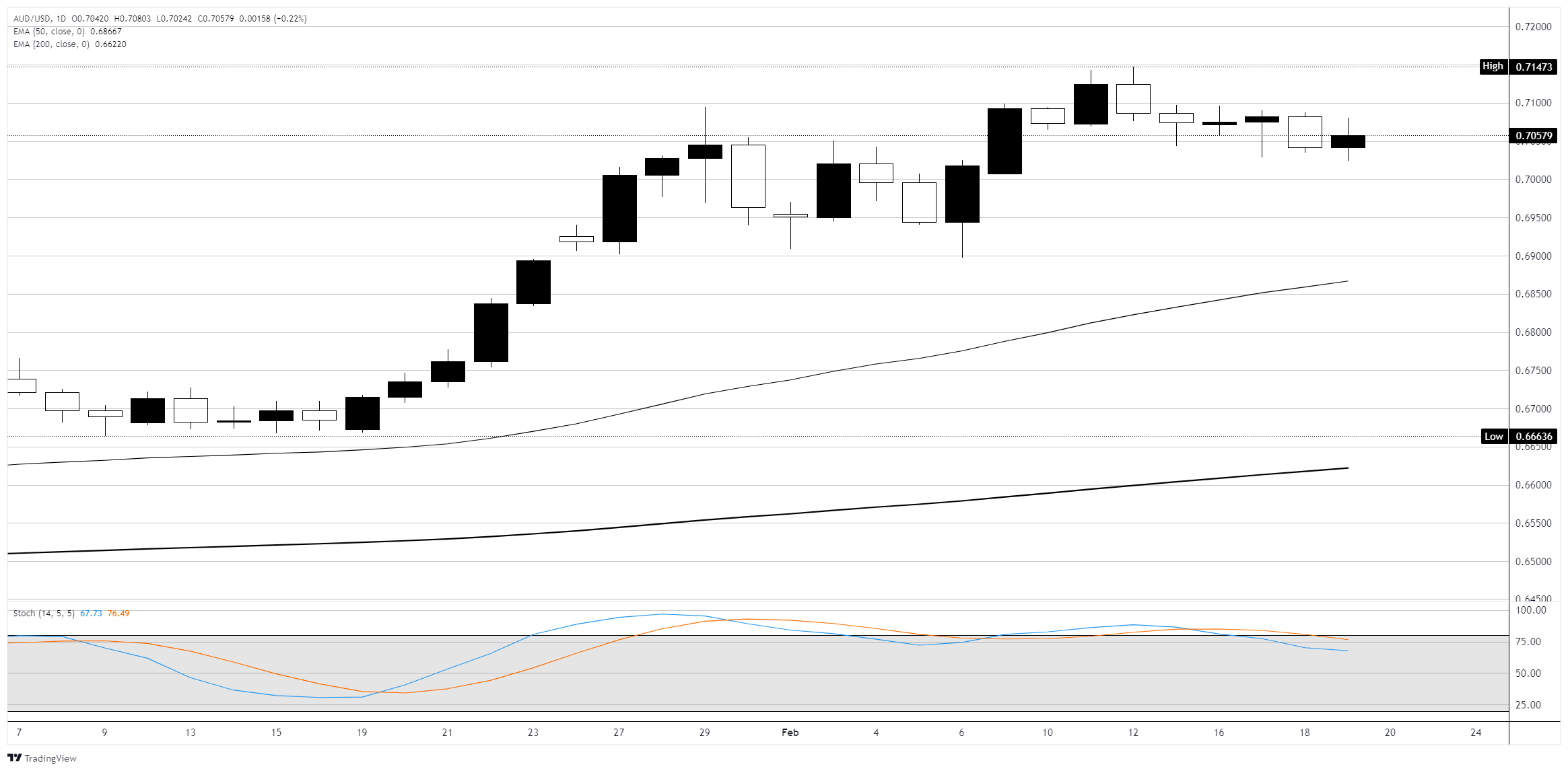 澳大利亚央行(RBA)2月份将利率上调至3.85%,这是两年来的首次加息,此举继续支撑澳元,因为本周的会议纪要指出了高企的通胀风险,并为进一步收紧政策留出了空间 标题:澳元/美元:澳元金额保持在0.7000以上,因为澳大利亚储备银行的偏鹰派立场与美元强势相遇