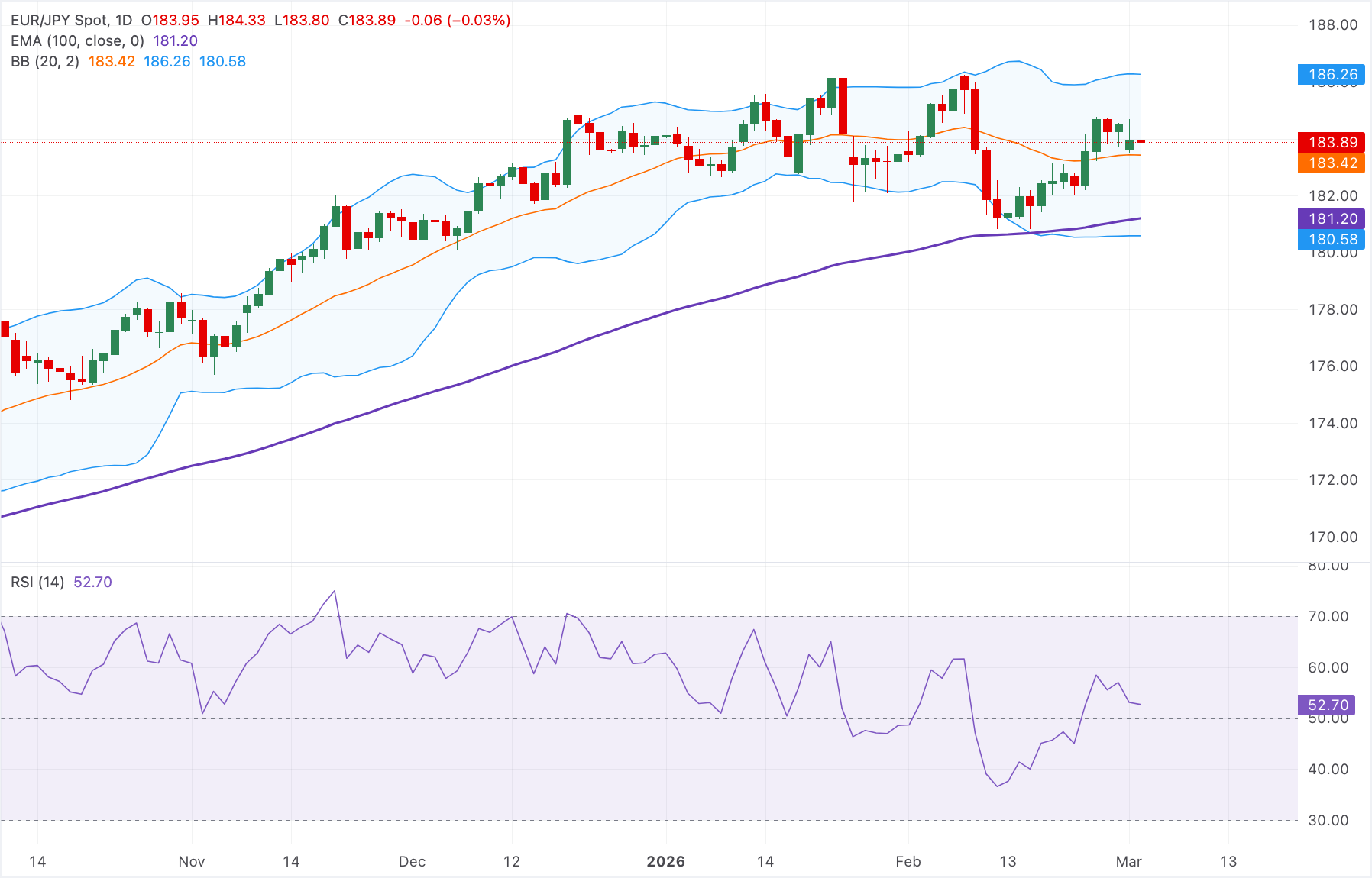 欧元/日元周二欧洲早盘时段在183.90附近小幅下跌。由于中东地区地缘政治紧张局势加剧,推动了避险需求,日元(JPY)兑欧元(EUR)走强。 标题:欧元/日元价格预测:跌破184.00,但在EMA上方的上行趋势依然存在
