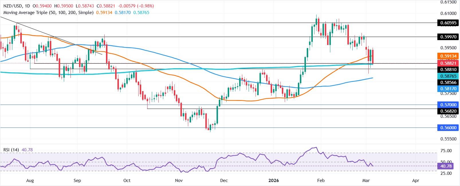 周四北美时段,纽元(NZD)大幅下跌,因为高企的美国国债收益率支撑了美元,美元在中东冲突升级的背景下创下了两天的新高 标题:纽元/美元价格预测:下跌至200日均线,关注0.5800