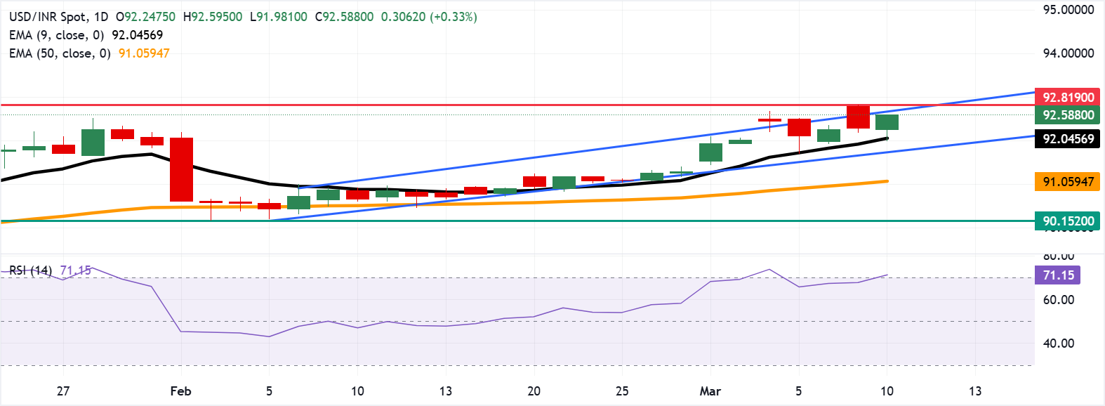 美元/印度卢比在前一交易日小幅下跌后反弹。然而,由于印度卢比(INR)在风险厌恶加剧和油价上涨的背景下面临强烈的卖压,该货币对周一触及92.81的历史高点 标题:印度卢比持续承压,美元/印度卢比接近历史高位
