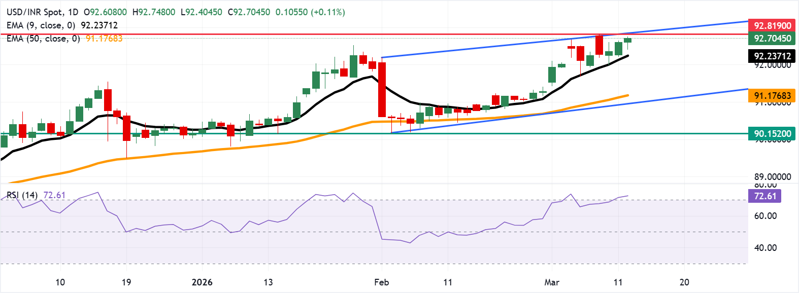 美元/印度卢比在周四连续第三个交易日保持上涨势头 标题:印度卢比承压,因油价因供应中断而上涨