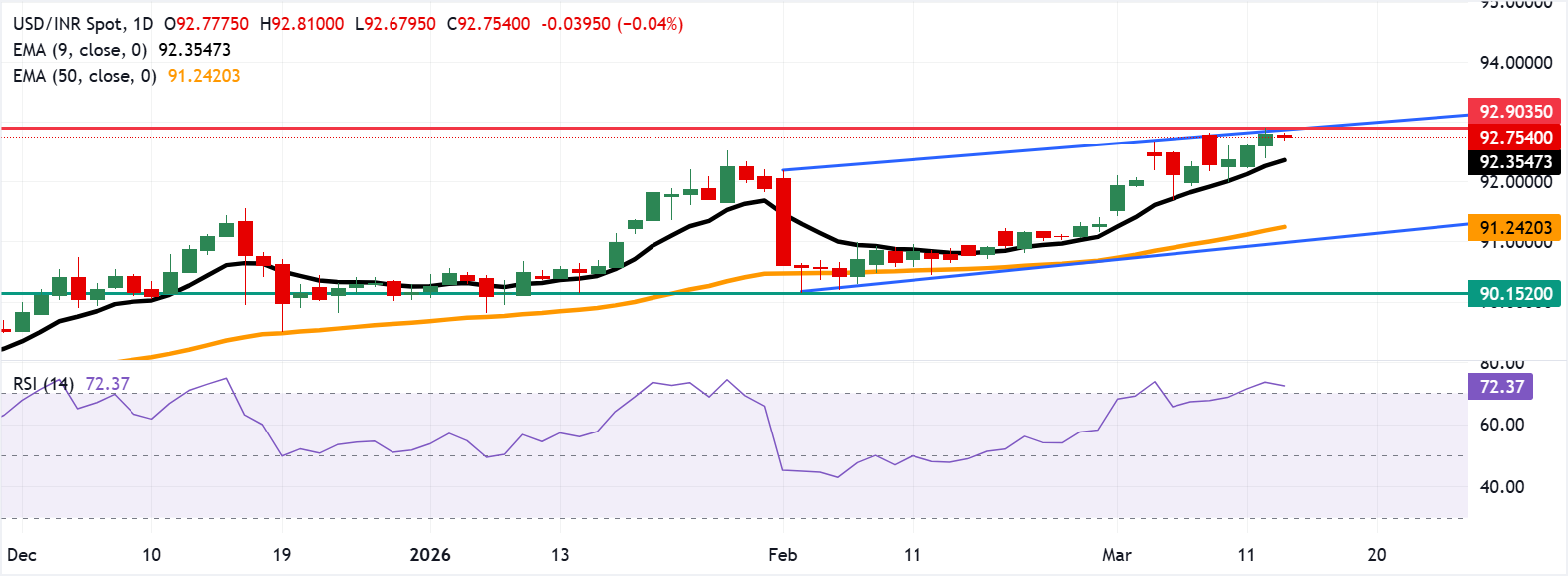 美元/印度卢比在周五贬值,此前在上一交易日触及92.90的历史高点 标题:美元/印度卢比在创下新高后小幅下跌